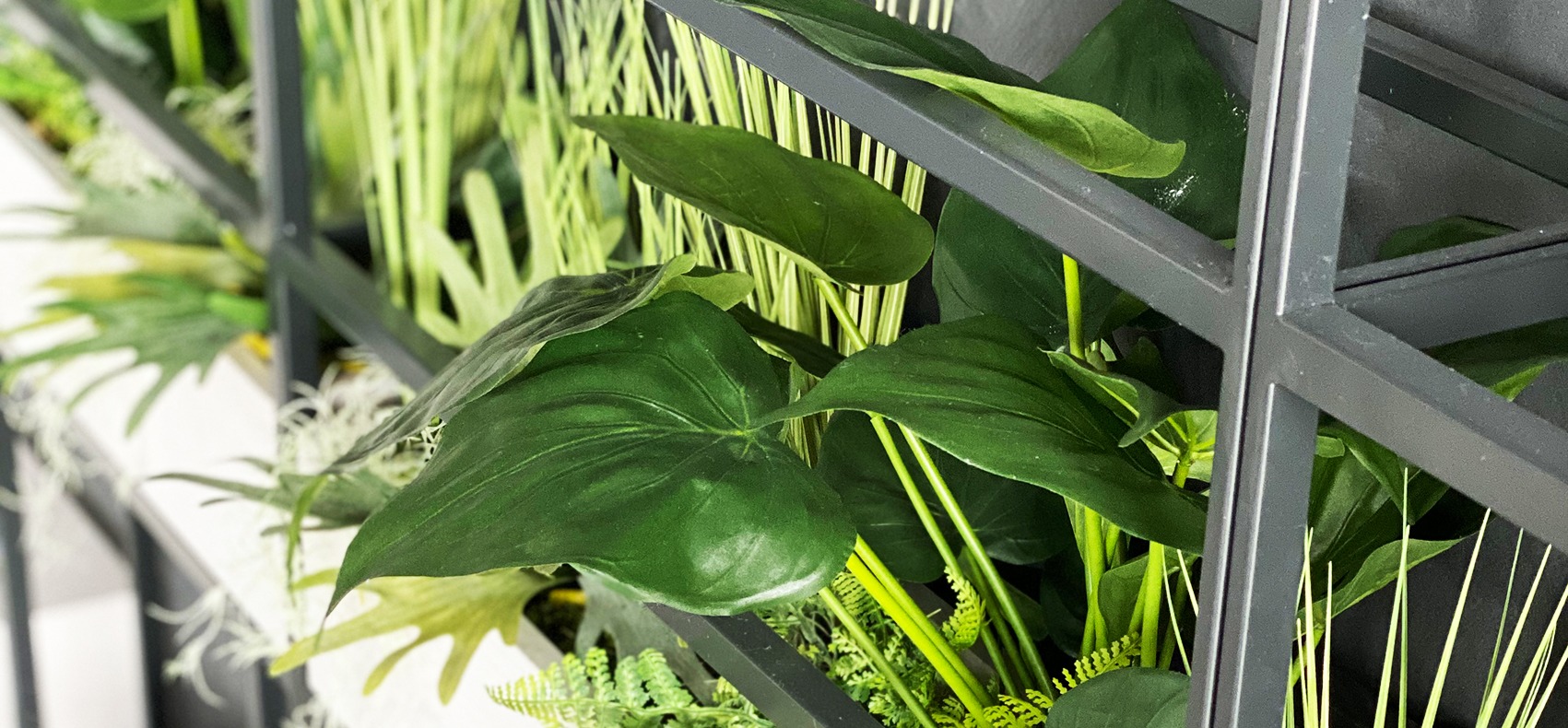 - Different combinations: unlike live plants, when creating displays of artificial plants, we do not have to adhere to rules on mixing different plant varieties. This means that you can combine very different colour and texture variations based purely on visuals.